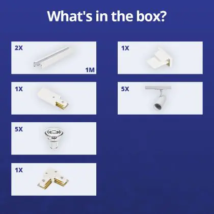 Complete Set 1-Fase Rail L 1 x 1 Meter Wit | incl. 5x Spot + GU10 2700K 3W Dimbaar + 1 x 1 Meter Eindkap, Voedingsconnector en L -Verbindingsstuk