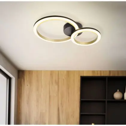 Eglo Plafondlamp Calliera Staal Zwart, Messing 12W 1500lm - 830 Warm Wit | Dimbaar