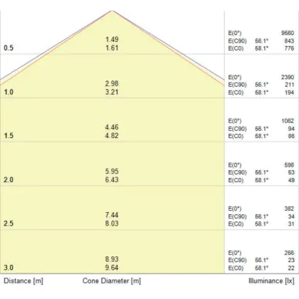 De gradenbundel geeft informatie over hoe breed het licht wordt uitgestraald. Dit zit tussen de 0 en 360 graden (D). Hoe kleiner de hoek, hoe specifieker de lichtbundel is. Over het algemeen is een smalle gradenbundel perfect voor sfeer- of accentverlichting, terwijl een brede gradenbundel ideaal is om grote oppervlaktes te verlichten.