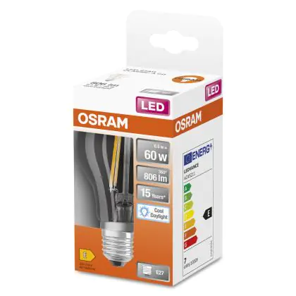 Osram Classic LED E27 Peer Filament Helder 6.5W 806lm - 865 Daglicht | Vervangt 60W